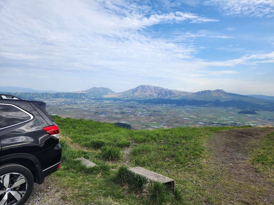 この時は北東の方に進んでいたので大観峰に寄り、こんな感じで車と景色を一緒に撮りました!