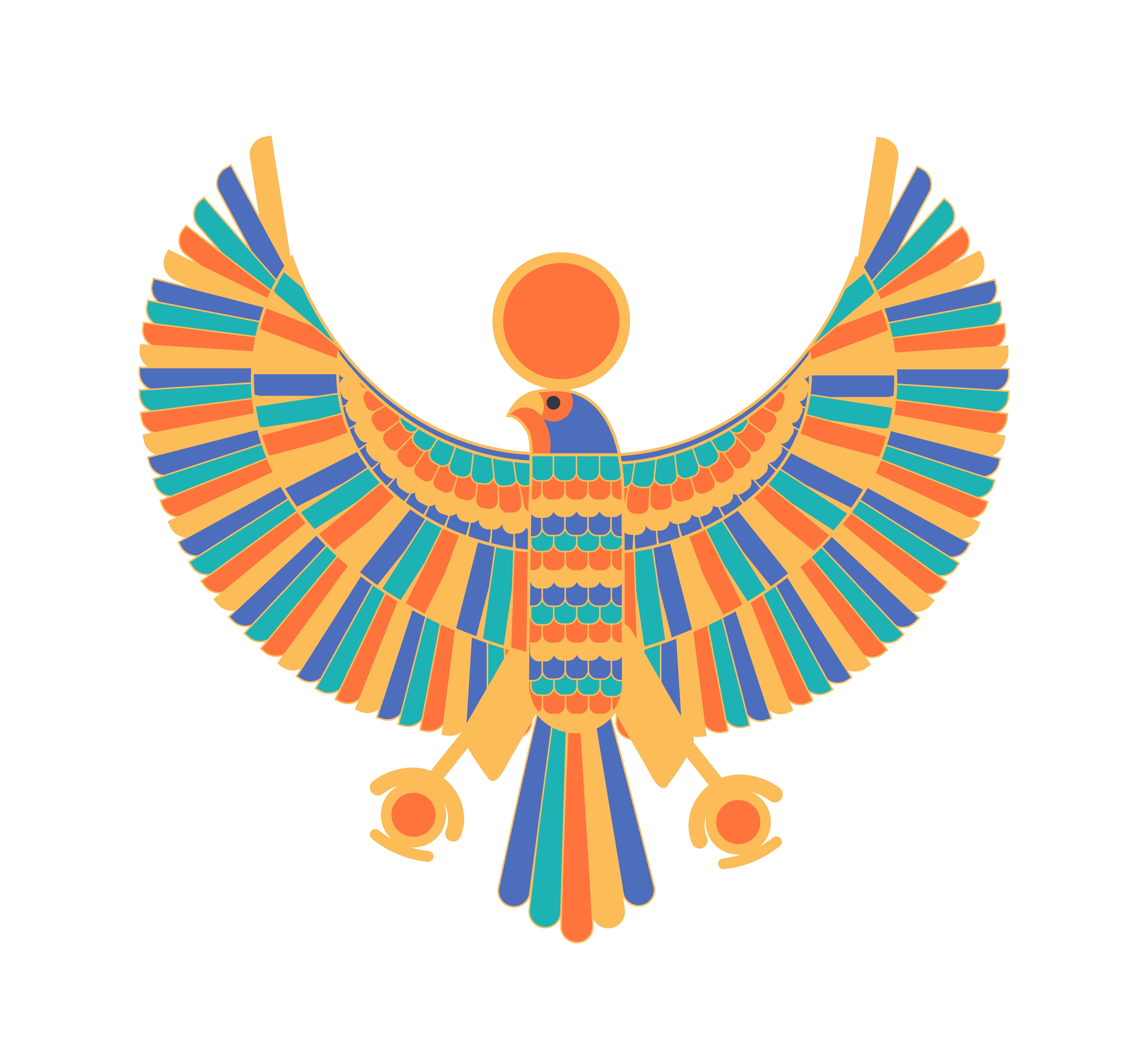 Ra – god, creator, deity or mythological creature depicted as falcon and sun disk. Legendary character from ancient Egypt mythology, culture or religion. Colorful vector illustration in flat style.