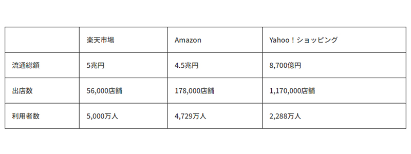 また、国内3大ECモールにはそれぞれの強みがあるため、