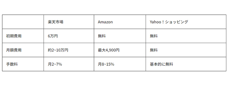また、楽天市場はほかのモールに比べて初期費用やランニングコストが高いため、