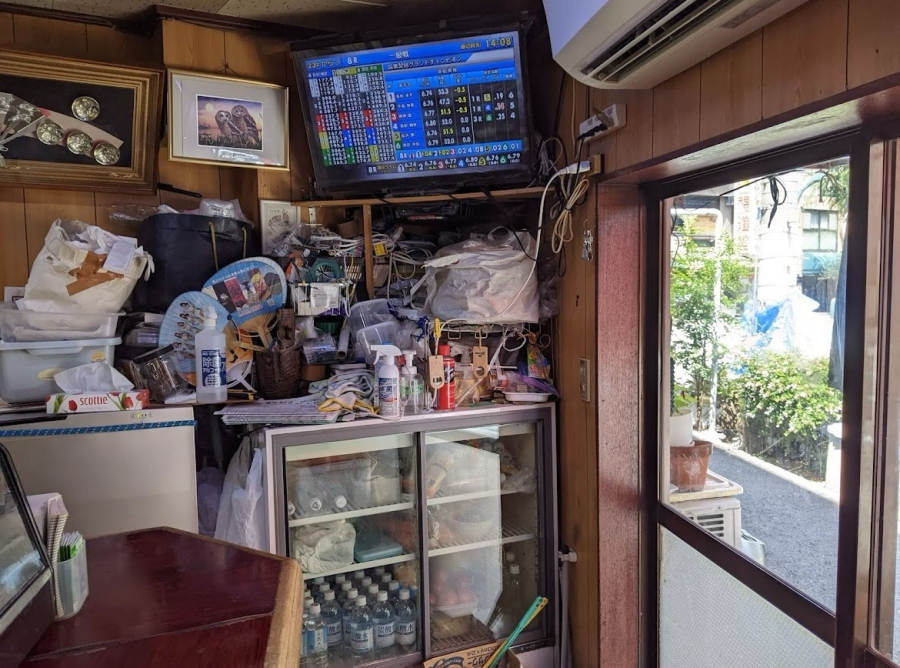 近くには競艇場外発売場があり店内に置いてる舟券のシートに記載して呑んでる途中でも競艇場外発売場に行って舟券の購入・払戻が出来るみたい。