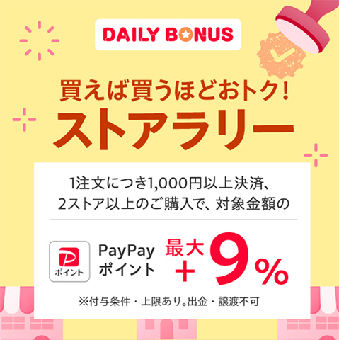 購入条件:Yahoo! JAPAN IDでログインの上、1注文につき1,000円以上決済、2ストア以上でお買い物をしていること