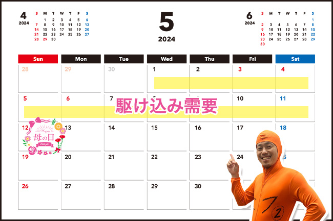 今年(2024年)の母の日は5月12日日曜日なので、遅くとも3月中旬ごろまでには準備をしておきましょう!