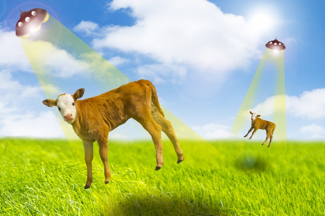 キャトルミューティレーションは、牛や家畜が奇妙な方法で傷つけられる事件で、特にアメリカで多く報告されています。これらの事件では、家畜が外科的な切断を受けたり、内臓が精密に取り除かれていたりすることが共通しており、手がかりや目撃証言が少ないため原因不明とされています。一部ではUFOや異星人の関与が噂され、超常現象の一環と考えられることもありますが、政府機関や研究者の調査でもその原因が特定されていません。