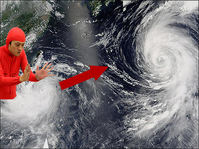 「台風28号は27号を止めるためにやって来たフー子ではないか?」